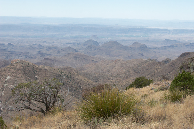 After the spectacular inital view, the trail continues along the rim for another half hour or so, giving additional displays. In this one, you can clearly see Santa Elana Canyon: the big gorge to the right. You can also see the Rio Grande floodplain traveling parallel to the cliff (look for the green of the willow trees).
