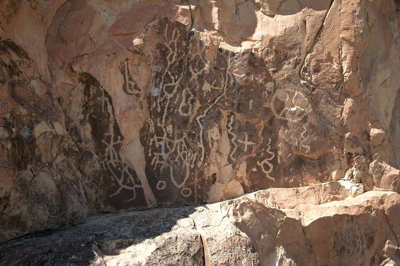 The trail continues between the formation on the left and the larger formation on the right. If you take the trail to the left formation it leads directly to this petroglyph.