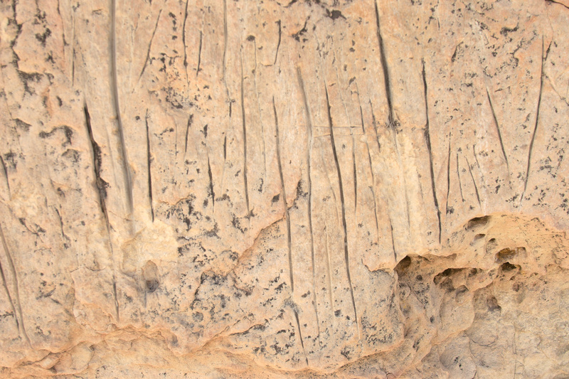 The most notable feature of the outpost are these regular incisions into the rock. It is a little hard to tell from the picture, but they occur only within the encampment and are always similar in length and depth. My assumption is that these were used to sharpen stone knives or arrowheads.