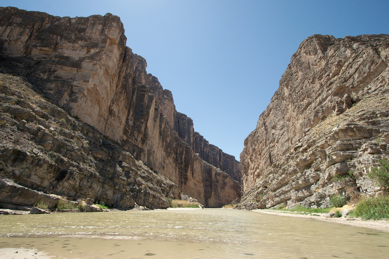 Remember that gulch visible from the Chimneys Trail? Here it is: Santa Elena Canyon, carved by the relentless Rio Grande. The canyon is about 1500 feet tall. You can get some sense of perspective by the railings of the trail climbing the righthand side. Mexico is across the river on the left side.