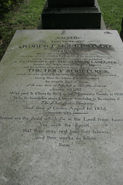 The main building at my church is named after Robert Morrison, so it was great to see his grave.