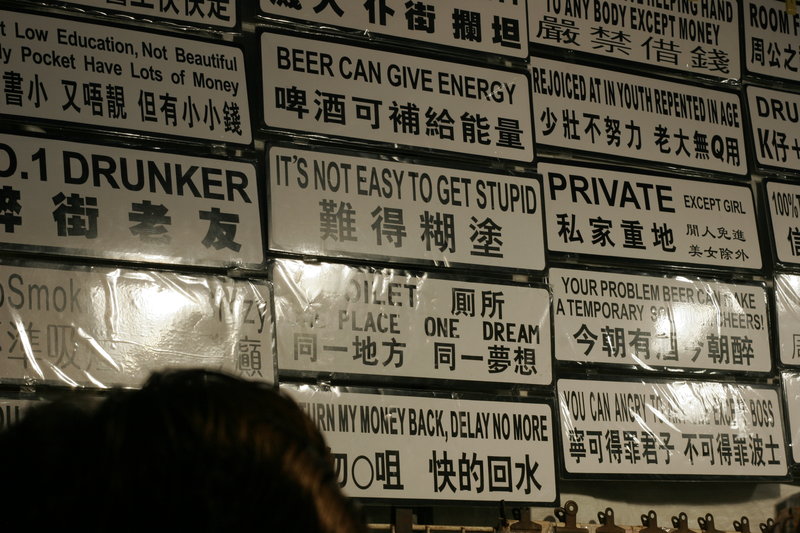 The Engrish in Hong Kong and Macau is way better than in Japan. At the night market, you can buy it in big signs! Some of the harder to read ones say: