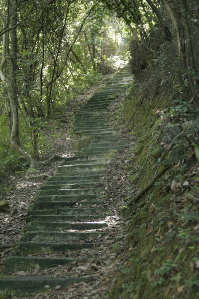 The Lantau trail climbs up the mountain, past a Chinese-style garden, and then up these stairs.